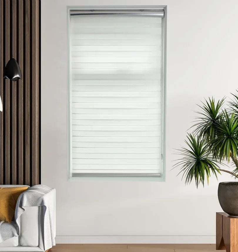 Aanpasbare Lichtinval: Pas de hoeveelheid binnenkomend licht eenvoudig aan door de semi-transparante en dekkende banen te verschuiven.